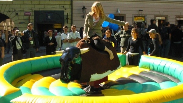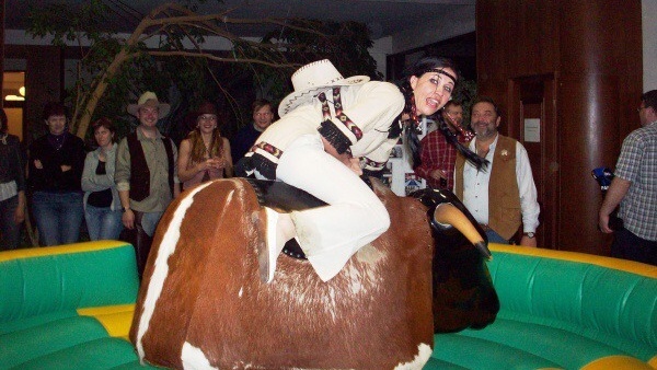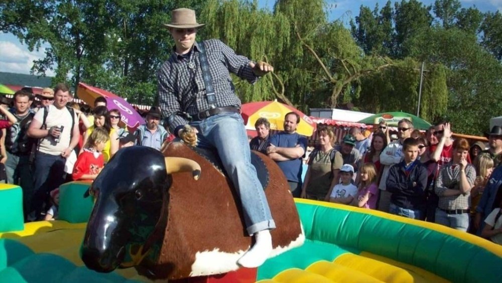 Divoký elektrický býk je klasická zabavně-soutěžní atrakce. Býk využívá 10 rychlostí na klonění, klopení a 10 rychlostí na otáčení. Díky digitální časomíře můžeme na každé akci soutěžit. Pokud je akce v duchu westernu, tak naše obsluha může být i v tomto tématu oblečena. Pokud na býkovi jsou menší děti, tak naše obsluha přizpůsobí pohyb věku účastníka. Bezproblémové umístění v interiéru, exteriéru a na různých typech povrchů. Pronájem elektrického býka využijete na mnoha různých eventech. Na westernových akcích doporučujeme spojit se simulátorem dojení.